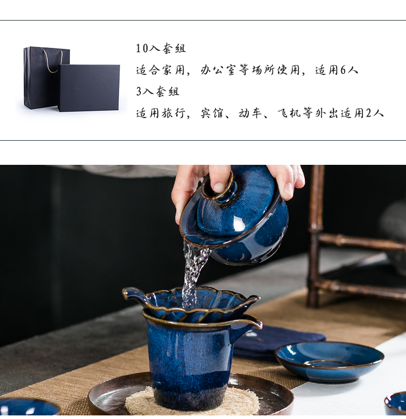 藍兔毫鈞窯蓋碗10入套組